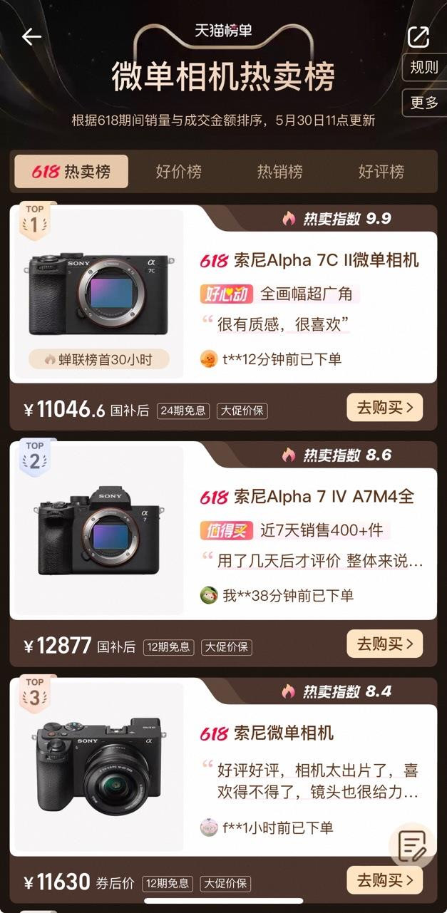 国补叠加天猫618民间配资,带动数码相机消费需求热潮,品牌迎来销量大爆发。