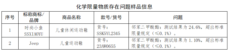 六价铬、甲醛、重金属总量、邻苯二甲酸酯在强制性国家标准GB30585-2014有明确的限量要求,若产品的六价铬、甲醛、重金属总量、邻苯二甲酸酯含量超标,可能会危害身体健康。本次比较试验中,时尚小鱼SSXIAOYU、Jeep等2件样品的邻苯二甲酸酯测试结果超出标准限量值。